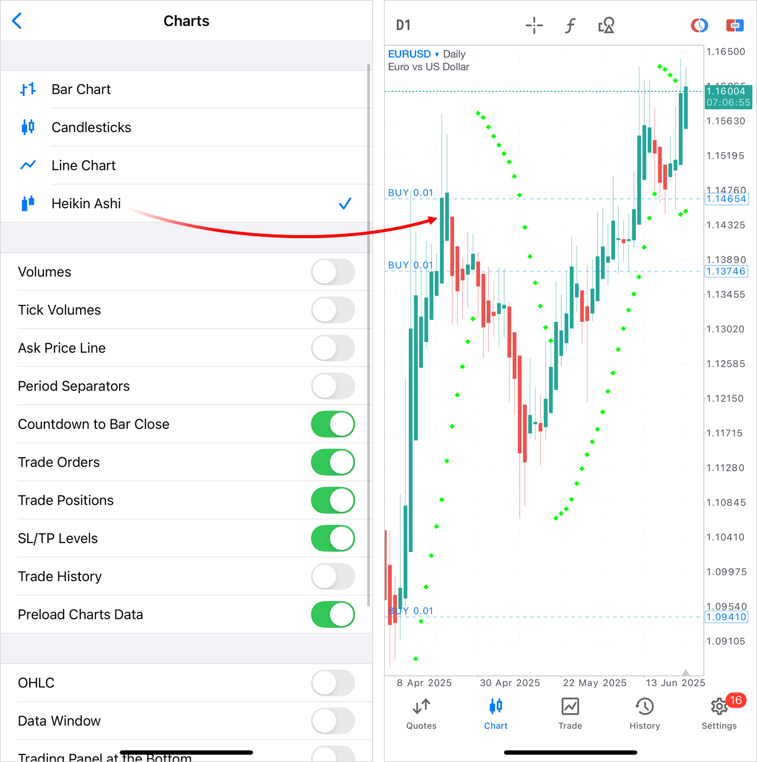 - 添加了 ZigZag 和市场概况指标,以及新图表类型 — 平均 K 线图(Heikin-Ashi)。这些工具将增强市场分析和趋势识别。
