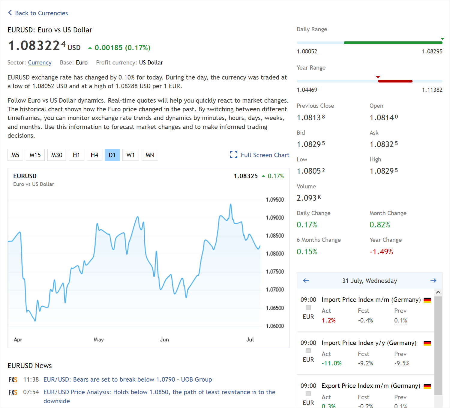 - 货币、加密货币、金属、指数和商品的实时价格。
